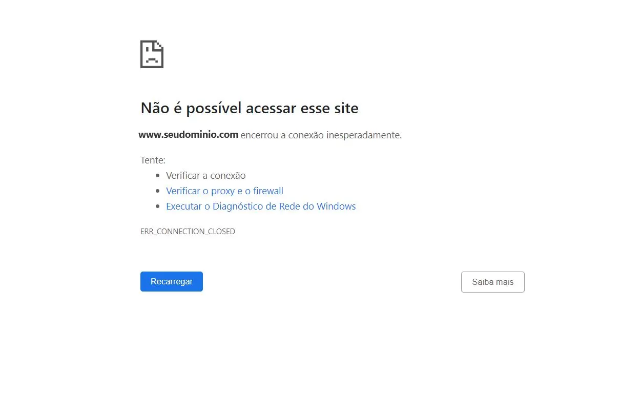 • Erros de DNS, SSL ou apontamento de domínio.