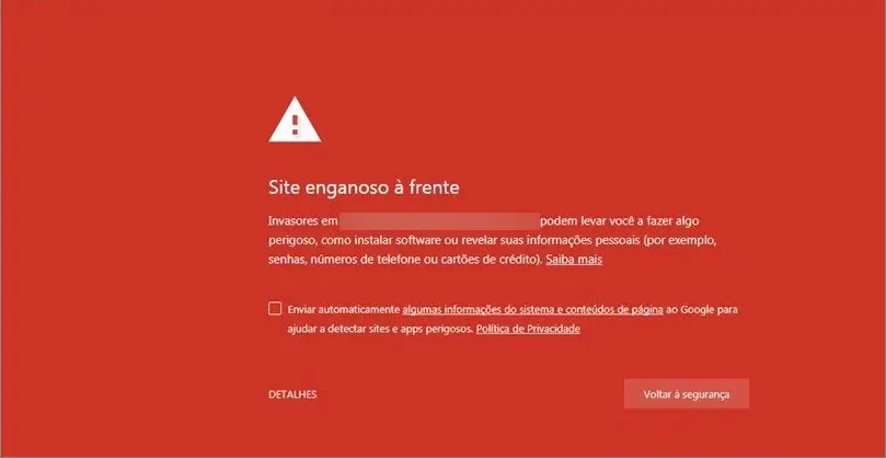 • Site hackeado ou com vírus/malware.